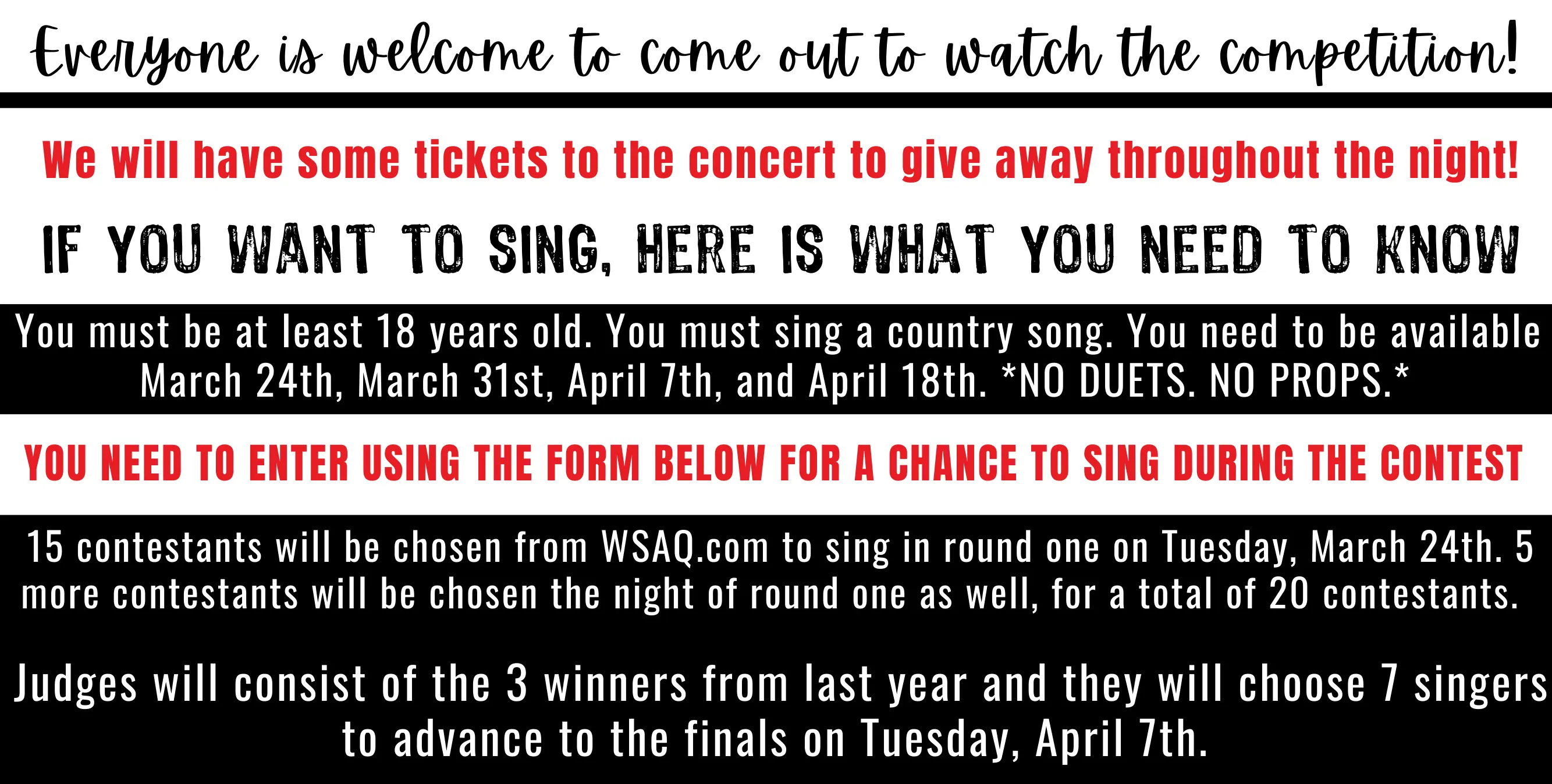 - Enter to compete in the Karaoke 2026 Contest at wsaq.com