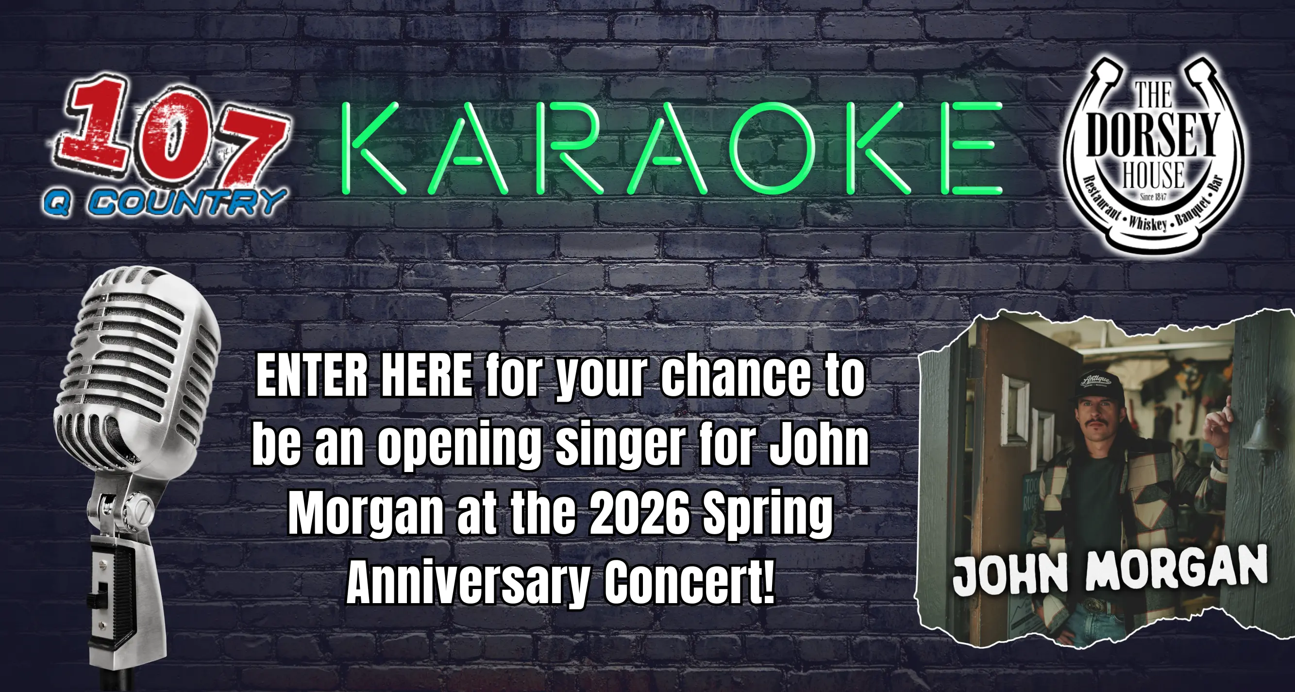 The Karaoke Contest is back at The Dorsey House this year to find out who’s going to open up for John Morgan for our Spring Anniversary Concert on Saturday, April 18th!